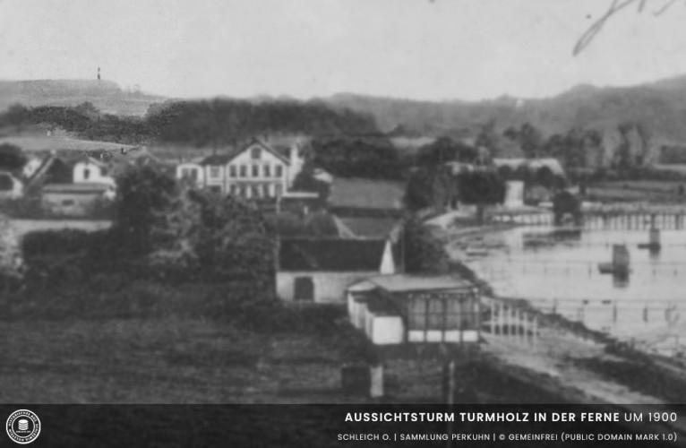 Die 54 Meter hohe Erhebung (der höchste Punkt in der Umgebung) hieß früher Daakholz und wurde erst mit dem Bau eines Aussichtsturms 1870 in Turmholz umbenannt. Der Turm wurde vom Gutsbesitzer Droege in Auftrag gegeben und vom Zimmermann Göttsch vom Burbarg erbaut. Von hier aus konnte man die französischen Kriegsschiffe auf der Förde beobachten, als sie Kiel blockieren wollten.
