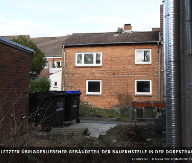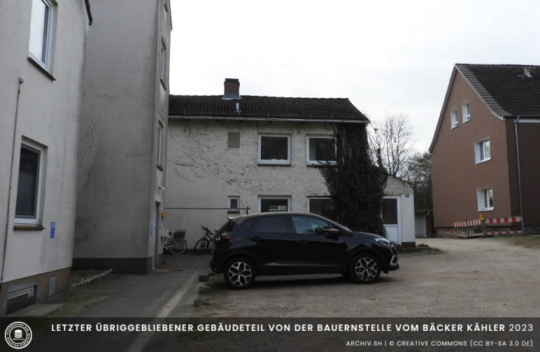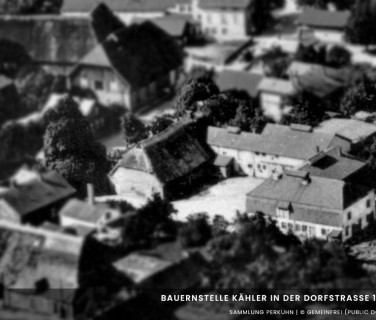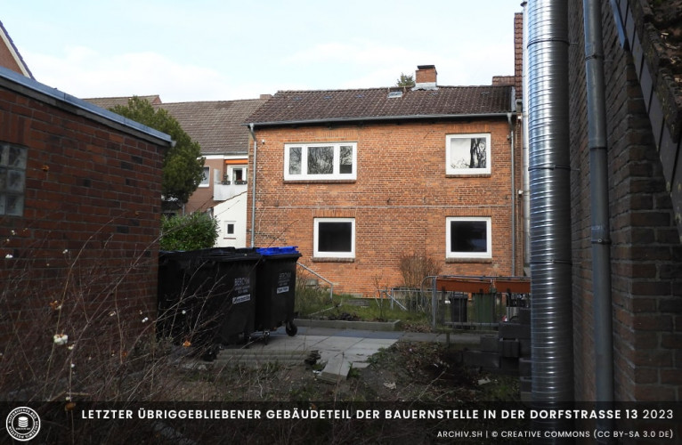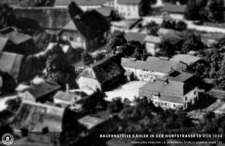Das Bauernhaus zur Straße wurde schon 1934 aufgegeben, man baute es aus zu einem schmucken 6 Familienhaus, in alter Form. Die Zierde blieb, die alte große Bäckertür blieb auch, sowie die alte schöne Buche. Bedeutender, der Vorgarten blieb, solange eine Frau Kähler lebte. Es war das schönste Gartenparadies im Dorf. 1944 brannte auch dieses schöne Haus gänzlich aus. Auf den Fundamenten Scheune steht heute das Wohnhaus Dorfstraße 13. Der kleine Anbau hinter dem Haus stammt noch aus damaliger Zeit, es ist das einzige Bauwerk welches von dem ehemaligen Hof erhalten blieb.