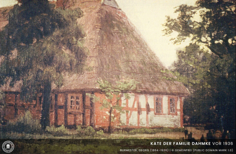 Unten am heutigen Möltenorter Weg lag der Hof der Familie Dahmke. Die alte Kate wurde als zweites Haus im Dorf gebaut und geht bis ins 17. Jahrhundert zurück. Das Grundstück erstreckte sich ursprünglich von dem heutigen Grundstück Nr. 9 bis Nr.21. Es lag an der Beek, über die man mit dem Boot in die Förde gelangte. Die Dahmkes waren Fischer und mit die ersten, die sich in Möltenort niederließen. Der erste war Hinrich Dahmke, er wird in einer Rechnung vom Gut Schrevenborn aus dem Jahr 1619 erwähnt. Er war Fischer und nebenbei Imker. Auch bis zu vier Schweine wurden auf dem Hof gehalten. 1686 wurde Paul Dahmke geboren. Er war ebenfalls Fischer und heiratete Magdalena Kähler. Die beiden bekamen 7 Kinder. Der älteste Sohn, Hans Hinrich (* 25.09.1718) übernahm den Hof, wechselte aber auf den Rethdamm, wo er Gutsfischer wurde. Der zweitälteste Sohn Steffen (* 03.08.1721) ging auf die Stelle Neuendamm am Dammteich. Der jüngste Sohn Jochim Friedrich (* 25.11.1735) ging auf die Stelle am heutigen Möltenorter Weg 31. Es blieb nur der drittälteste Sohn Paul (* 28.09.1732) der die Stelle von seinem Bruder übernahm. Nach ihm übernahm der Sohn des Jochim Friedrich (* 25.11.1735), Jochim Detlev Dahmke (* 1774) die Hofstelle.