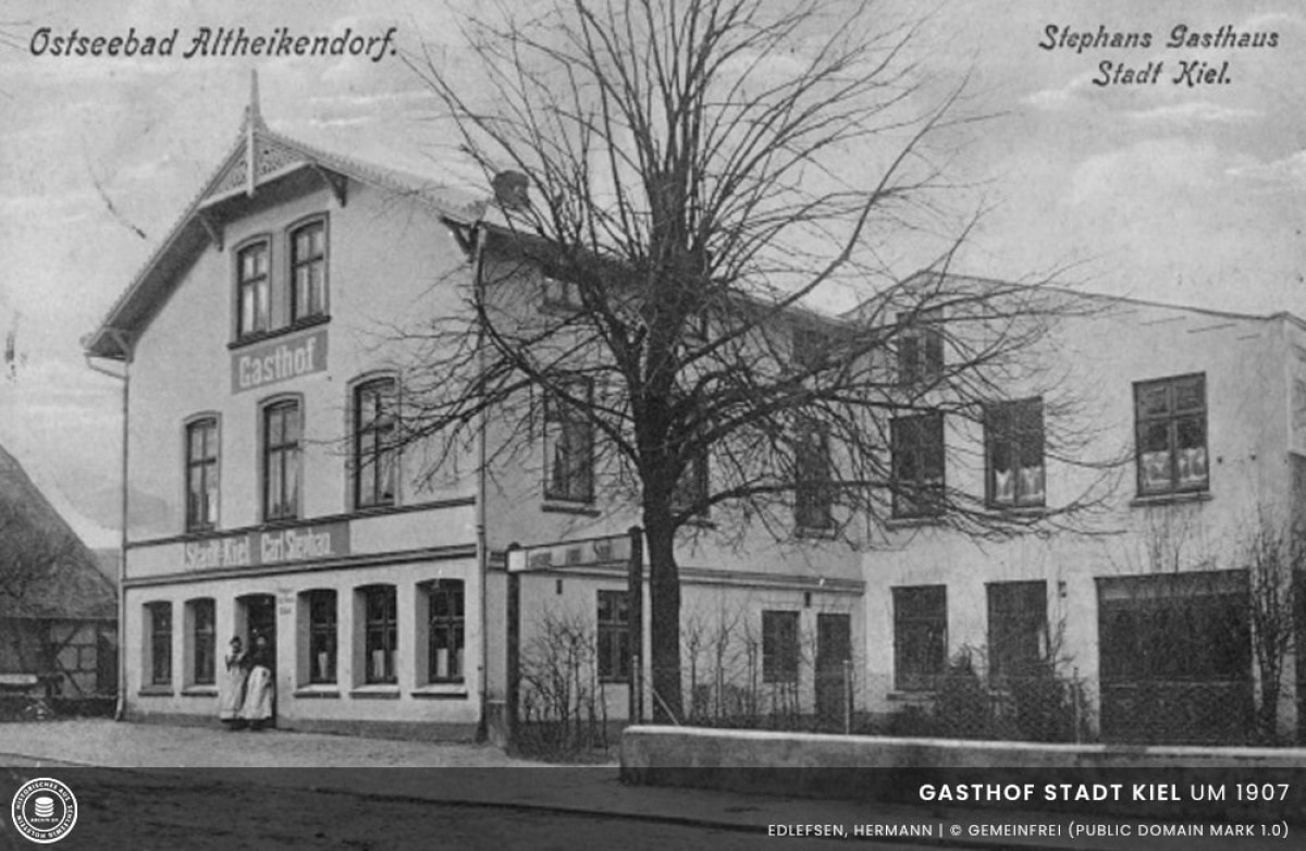 Der vorgänger vom Gasthof Stadt Kiel in Heikendorf wurde ende des 19. Jahrhunderts als sogenannter Sniederkrog, auf dem damaligen Grundstück von der Vogtstelle Böhe, erbaut. Hier stand einst ein kleines Haus. Schon ohne Fachwerk, mit Ziegelsteinen erbaut. Es stand dort schon in den 1860er Jahren und gehörte dem Schneider Fritz Steffen. Für damalige Verhältnisse war es ein geräumiges Haus mit einem beheizbaren Zimmer, zwei nicht beheizbare Zimmer, einer Kammer und einer hellen, geräumigen Küche. Es gab ausserdem Platz für eine Ziege und ein Schwein. Frit Steffen war nebenbei auch Musikus und wurde "Fritz Bläser" genannt.