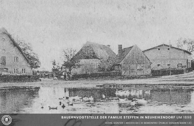 Hans Friedrich Steffen wird 1907 bei der Geburt seines Sohnes als Hufner in Neuheikendorf erwähnt.