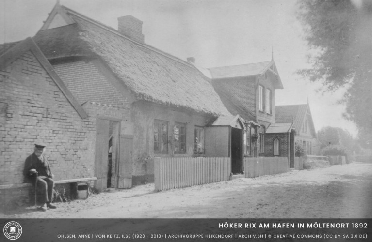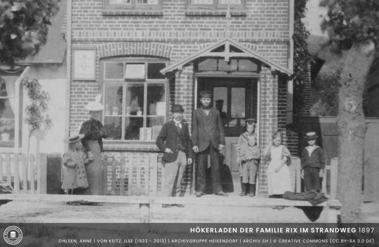 Seit dem Jahr 1873 befand sich in dem 1868 gebauten Haus der Familie Rix im Strandweg Nr. 4 ein Geschäft für Kolonialwaren von Heinrich Wilhelm Rix (* 26.06.1848 - 03.11.1938). Er heiratete Johanna Margarethe Möller (* 1846 - 1912) aus dem Nachbarhaus im gleichen Jahr. In dem Laden bekam man verschiedenste Produkte, wie z.B. Wurstwaren, Käse, Gewürze, Mehl, sowie Seife, Petroleum, Schreibwaren und Pantoffeln.