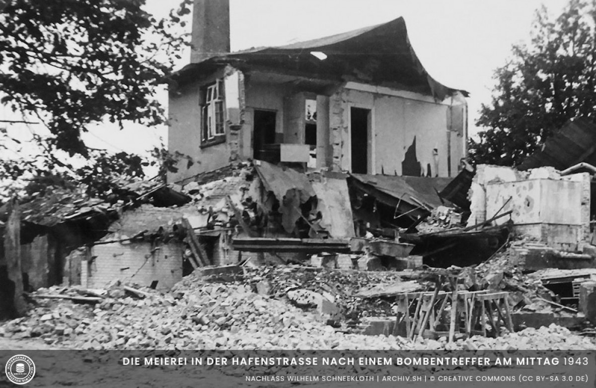Der Milchfuhrmann Rudolph Christian Steffen (* 1877), genannt Rudi Sattler, kam am 29. Juli 1943 ums Leben, als die Meierei in der Hafenstraße vollständig zerstört wurde.