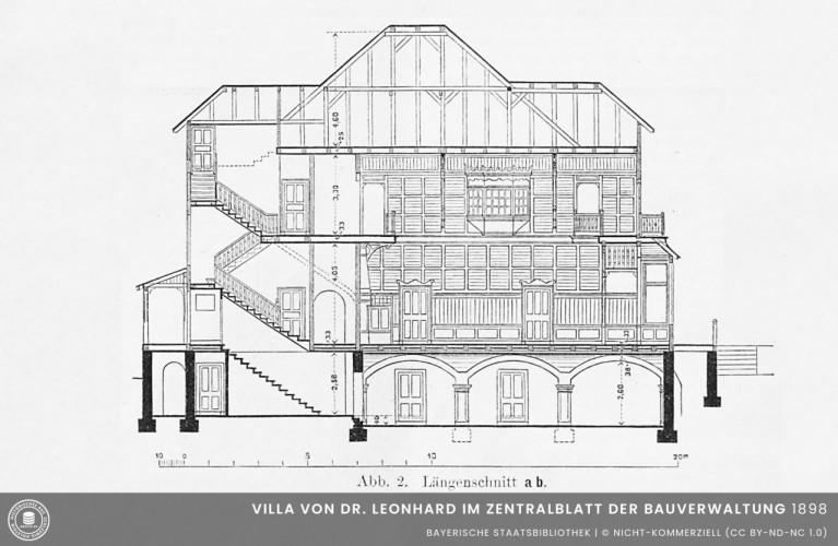 Die hölzerne Villa auf der Anhöhe hatte Dr. Leonhard bei der 10. Weltausstellung in Paris im Jahr 1889 entdeckt. Sie wurde nach der Ausstellung dort abgebaut und in Heikendorf wieder aufgebaut. Sie verfügte unteranderem über einen großen Saal, eine Veranda, eine Küche und mehrere Gästezimmer. Das Gebäude wurde im Zweiten Weltkrieg zerstört.