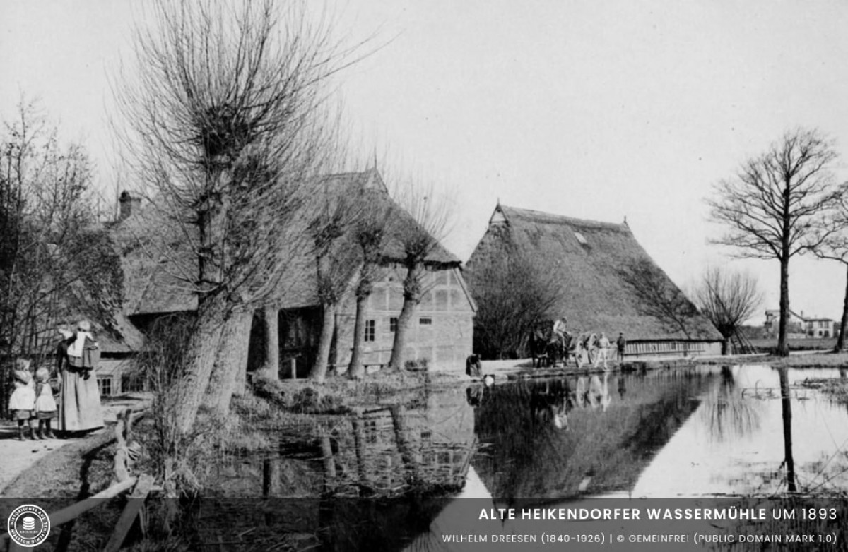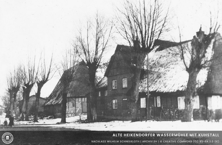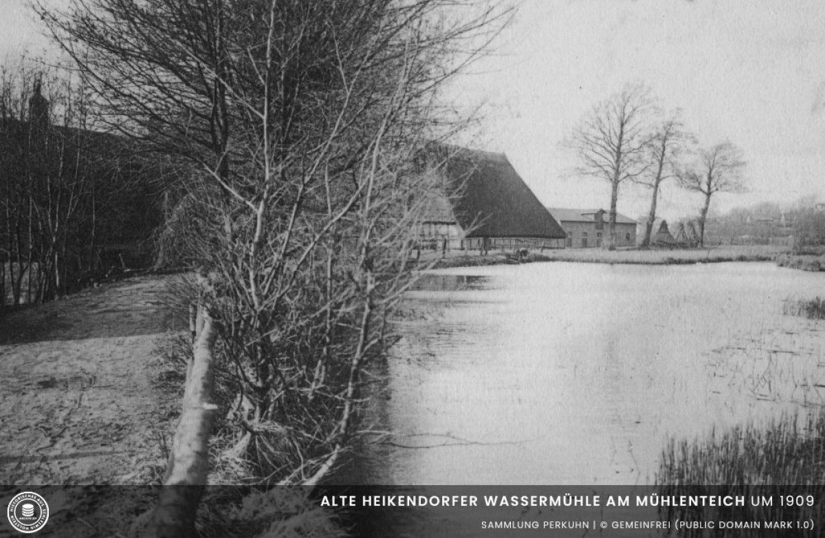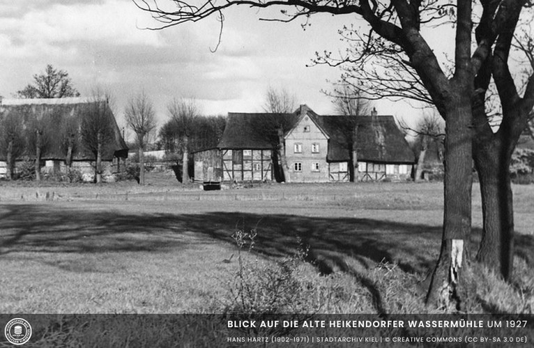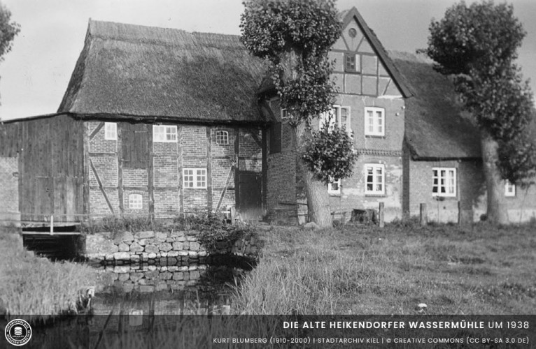 Schon im Spätmittelalter soll es in Heikendorf eine Wassermühle gegeben haben. Im Kaufvertrag von 1613 zwischen Detlef Brockdorff (Gutsherr Schrevenborn) und dem Statthalter von Kopenhagen Geert Rantzau, ist bereits von "Teichen, Dämmen und Mühlen" die Rede.