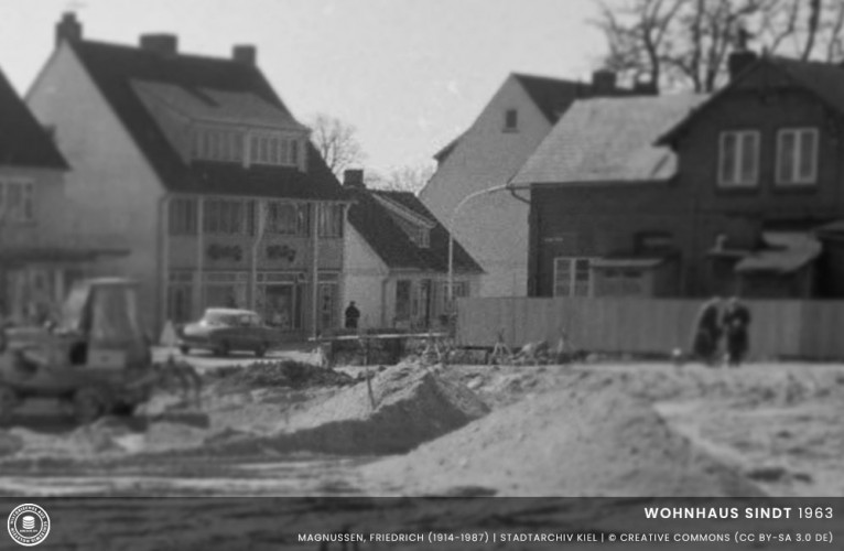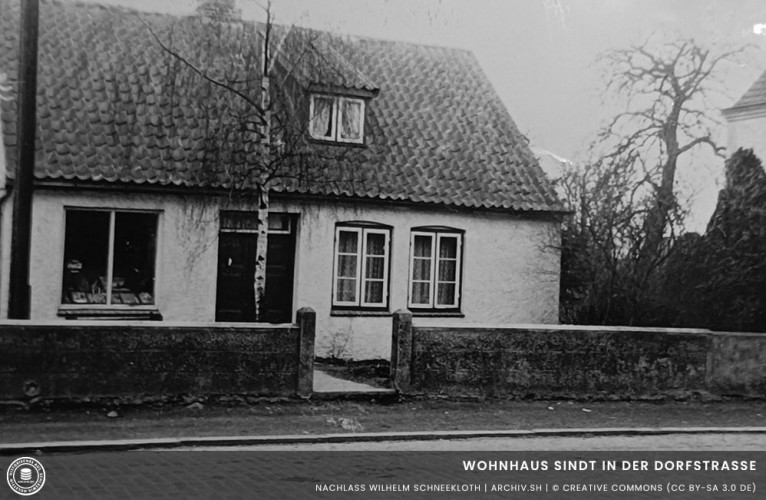 Das kleine Wohnhaus stand direkt neben Klühn‘s Kuhstall, befand sich aber noch auf dem Grundstück vom Insten Kähler (heute Wiesenkamp). Es wurde bewohnt von Meta Sindt, Tochter von Jürgen Sindt und Magdalena geb. Kähler, diese ist wiederum eine Tochter vom Insten Friedrich Detlev Kähler. Meta war Weißnäherin und später handelte sie mit Obst und Gemüse. In dem Haus wurden wärend des Zweiten Weltkriegs Lebensmittel getauscht. Zwangsarbeiter vom Jägersberg, die aus Italien stammten, tauschten hier zum Beispiel ihre Butter gegen Margarine ein, weil ihnen die Butter fremd war. Auch gab es in dem Haus immer die neusten Nachrichten zu hören.